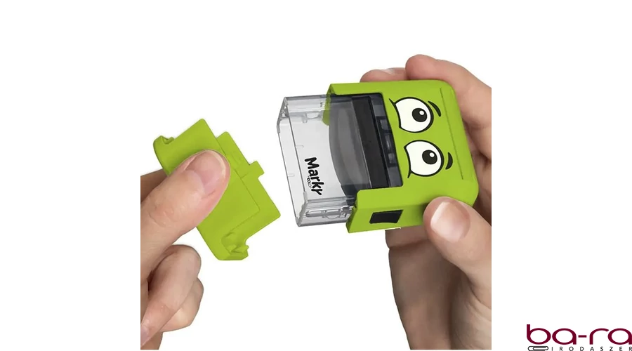 Praktikus, kirakós textil bélyegző a gyermekek ruháinak, tárgyainak megjelölésére. A betűkészletből kirakható a név, piktogramokkal színesítve.