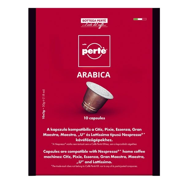 A CAFFÉ PERTÉ Classico kávékapszula egy olasz stílusú, közepesen erős pörkölésű kávékeveréket tartalmaz. A kapszulák kompatibilisek a legtöbb szabványos kávékapszulás géppel, 10 darabos kiszerelésben kaphatók. Az ital intenzív, gazdag ízvilágot kínál, amely tökéletes választás mindennapi fogyasztásra. A blend telt ízű, aromás és krémes. A kapszulák aromazáró csomagolásának köszönhetően hosszan megőrzik a kávé frissességét.